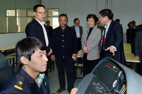 視察期間,王榮昌、秦河向孫偉一行簡要介紹了學院新校區建設、國家骨干高職院校建設、牽頭組建山東省軌道交通職業教育集團、校企合作辦學體制機制創新、特色專業建設、特色人才訂單培養、“3+2”本科教育、招生就業、大學生創新教育等相關工作情況。孫偉看到、聽到學院各項事業蓬勃發展、蒸蒸日上感到非常高興,對學院各項工作創新發展及國家骨干高職院校建設成果表示滿意。他指出,在全省加快推進現代職業教育體系建設的進程中,學院既要抓住機遇、抓牢機遇,又要利用優勢、發揮優勢,突出自己的專業特色,打造響亮的職教品牌。