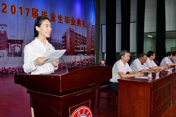 “我(wo)們將以(yi)畢業為新(xin)的起點(dian),秉承‘知能共進(jin),德道(dao)同優’校(xiao)訓精神,在各自的工(gong)作崗(gang)位上(shang)(shang)勤(qin)于實(shi)(shi)踐、踏實(shi)(shi)做事(shi),在事(shi)業軌(gui)跡(ji)上(shang)(shang)繼(ji)續鐫(juan)刻著我(wo)們忠誠、求(qiu)實(shi)(shi)、勤(qin)奮、創(chuang)新(xin)的堅(jian)實(shi)(shi)足印,為母校(xiao)增光添彩,為祖國建(jian)設添磚加瓦。”