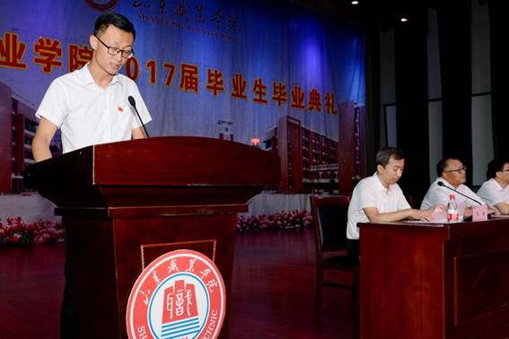 又是一(yi)個燦爛的(de)夏季,又是一(yi)年畢(bi)(bi)業(ye)(ye)(ye)的(de)時節。7月(yue)3日上午(wu),我院(yuan)(yuan)(yuan)(yuan)2017屆(jie)畢(bi)(bi)業(ye)(ye)(ye)生畢(bi)(bi)業(ye)(ye)(ye)典禮(li)在南益館隆重(zhong)舉行。學院(yuan)(yuan)(yuan)(yuan)領導王(wang)榮昌、秦河、徐(xu)冬、祝(zhu)瑞花、祝(zhu)介(jie)安、郭培(pei)謙、郭鵬出席典禮(li),學院(yuan)(yuan)(yuan)(yuan)各部(bu)門主要(yao)負責同志(zhi),各系(xi)主任、書記、輔導員,畢(bi)(bi)業(ye)(ye)(ye)班(ban)教師和畢(bi)(bi)業(ye)(ye)(ye)生代(dai)表參加畢(bi)(bi)業(ye)(ye)(ye)典禮(li)。典禮(li)由(you)副院(yuan)(yuan)(yuan)(yuan)長祝(zhu)瑞花主持。