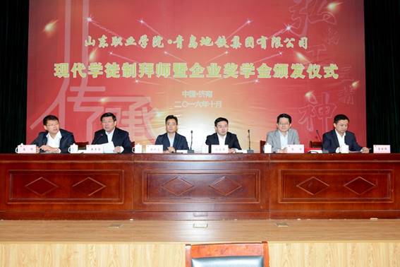 此次(ci)舉(ju)行拜師(shi)(shi)暨企(qi)(qi)業(ye)(ye)獎學(xue)(xue)(xue)金頒發儀(yi)式(shi),掀開了山(shan)東(dong)職業(ye)(ye)學(xue)(xue)(xue)院鐵(tie)道工程專業(ye)(ye)現(xian)(xian)(xian)代學(xue)(xue)(xue)徒(tu)(tu)制(zhi)項目建(jian)(jian)(jian)設的(de)(de)(de)新篇章,開啟了校(xiao)企(qi)(qi)共建(jian)(jian)(jian)師(shi)(shi)資(zi)(zi)、聯合培(pei)養(yang)、協(xie)同(tong)育(yu)人的(de)(de)(de)新征程。學(xue)(xue)(xue)院也將以本次(ci)拜師(shi)(shi)儀(yi)式(shi)為契機(ji)(ji)(ji),加強(qiang)與青島(dao)地鐵(tie)集團有限公司(si)的(de)(de)(de)深度合作,共同(tong)探索逐(zhu)步擴大現(xian)(xian)(xian)代學(xue)(xue)(xue)徒(tu)(tu)制(zhi)專業(ye)(ye)領域(yu),完善體現(xian)(xian)(xian)現(xian)(xian)(xian)代學(xue)(xue)(xue)徒(tu)(tu)制(zhi)特點的(de)(de)(de)管(guan)理制(zhi)度體系(xi),建(jian)(jian)(jian)設校(xiao)企(qi)(qi)互聘共用的(de)(de)(de)師(shi)(shi)資(zi)(zi)隊伍,創新人才培(pei)養(yang)模式(shi)改(gai)革(ge),健全多方參與的(de)(de)(de)考核評價機(ji)(ji)(ji)制(zhi),著力構建(jian)(jian)(jian)校(xiao)企(qi)(qi)分(fen)工合作、協(xie)同(tong)育(yu)人、共同(tong)發展的(de)(de)(de)長效機(ji)(ji)(ji)制(zhi),努力打造山(shan)東(dong)省現(xian)(xian)(xian)代學(xue)(xue)(xue)徒(tu)(tu)制(zhi)試點工作的(de)(de)(de)樣板和典范,為建(jian)(jian)(jian)設具有山(shan)東(dong)特色(se)的(de)(de)(de)現(xian)(xian)(xian)代學(xue)(xue)(xue)徒(tu)(tu)制(zhi)度,推動現(xian)(xian)(xian)代職教體系(xi)發展,更好(hao)的(de)(de)(de)為軌(gui)道交通行業(ye)(ye)和山(shan)東(dong)經濟(ji)社會發展做出更大貢獻。