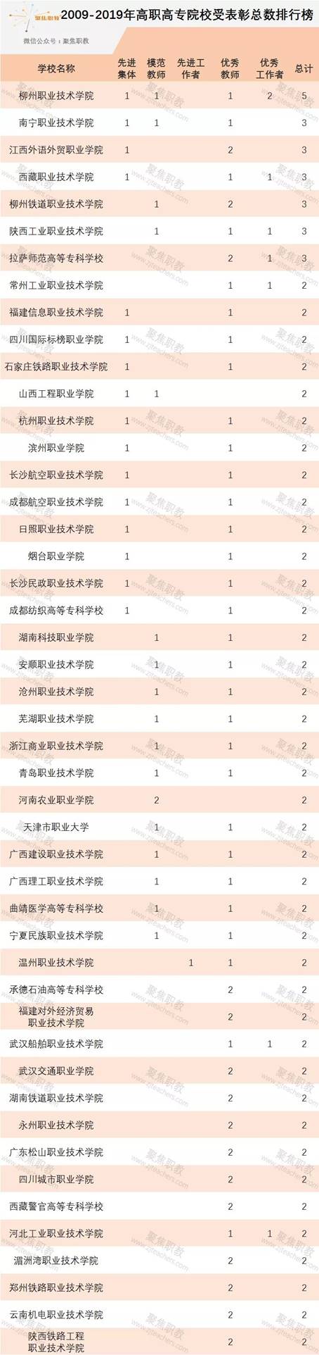 高職高專(zhuan)院校受(shou)表彰(zhang)總(zong)數排行榜(bang)