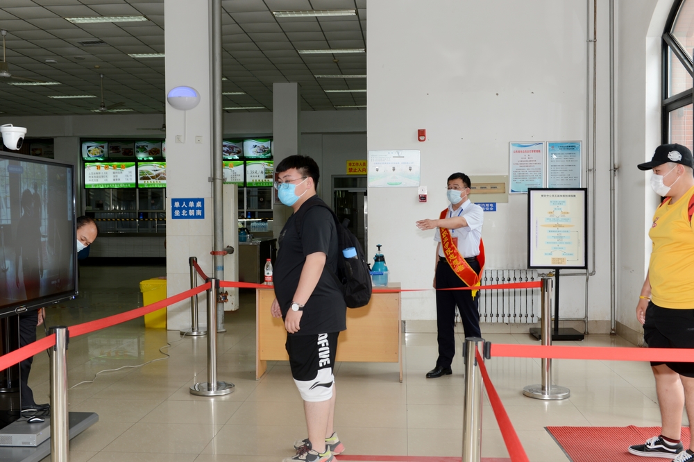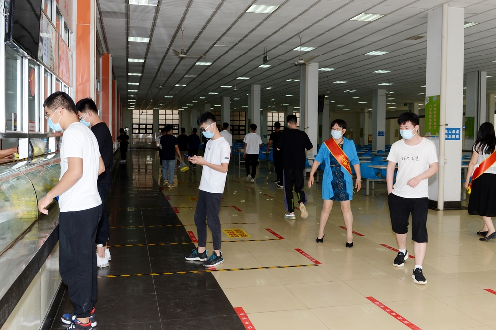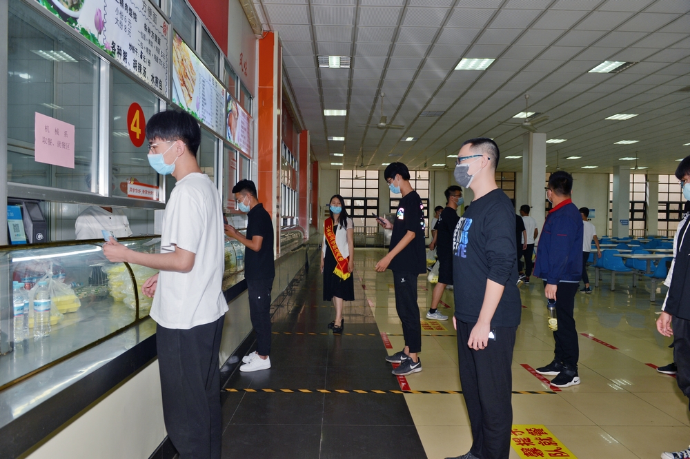 “同學(xue)(xue)們(men),請有序排隊,保(bao)持一米間隔。”“同學(xue)(xue)你好,請同向就座。”5月29日,是我院(yuan)學(xue)(xue)生返校后,正式組織(zhi)教學(xue)(xue)的第(di)一天。中午時分,學(xue)(xue)院(yuan)機關黨(dang)(dang)總(zong)支黨(dang)(dang)群黨(dang)(dang)支部的黨(dang)(dang)員(yuan)們(men)來到餐廳,維護(hu)師(shi)生就餐秩序。