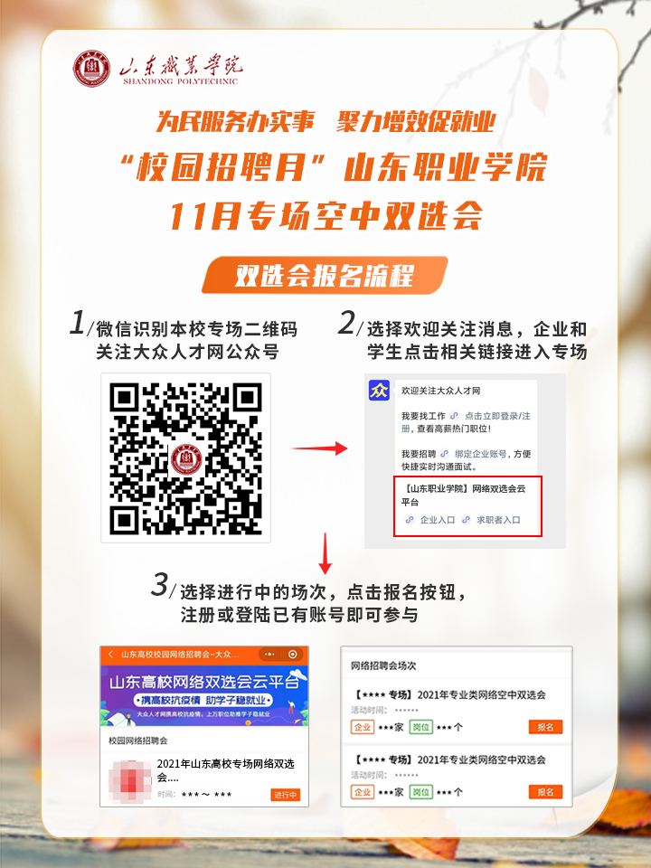 校園招聘月”山東職業學院空中雙選會 11月專場