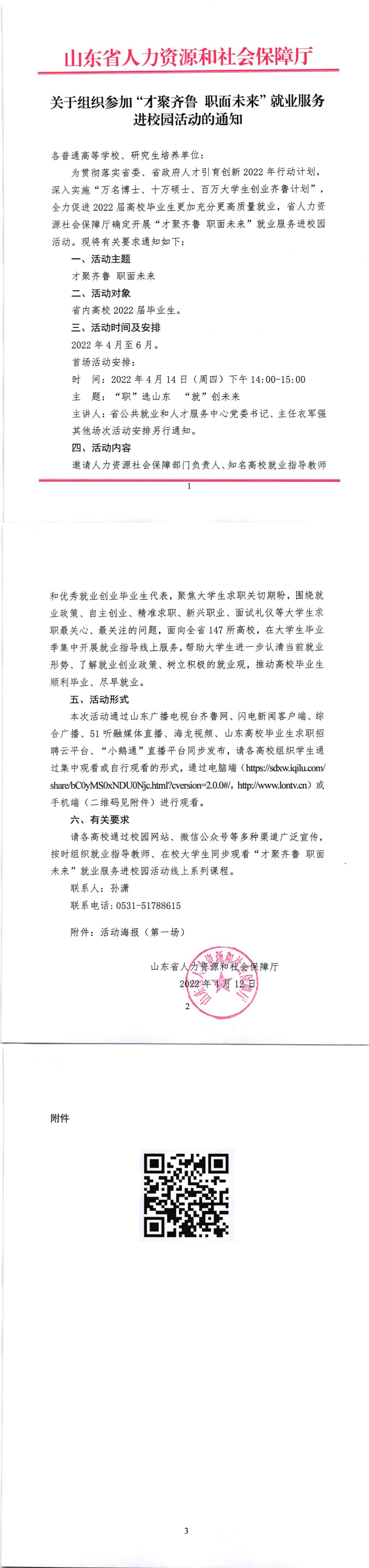 關于組織參加“才具齊魯 直面未來”就業服務進校園活動通知