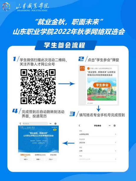為進一(yi)步貫徹落實(shi)黨中(zhong)央關于做好(hao)高校(xiao)畢(bi)業生(sheng)就業工作的指示精神和決(jue)策部署,沖破疫情阻隔,打通大(da)學生(sheng)就業信(xin)息源,確保(bao)我校(xiao)2023屆(jie)畢(bi)業生順利就(jiu)(jiu)業,同(tong)時滿足用(yong)人單(dan)位(wei)招才引智的需(xu)求,我校(xiao)決定(ding)召開(kai)“就(jiu)(jiu)業金秋,職面未來”山東職業學院2022年秋季(ji)網絡雙選會,誠邀廣大用(yong)人單(dan)位(wei)參會。現將有(you)關內容通知如下:
