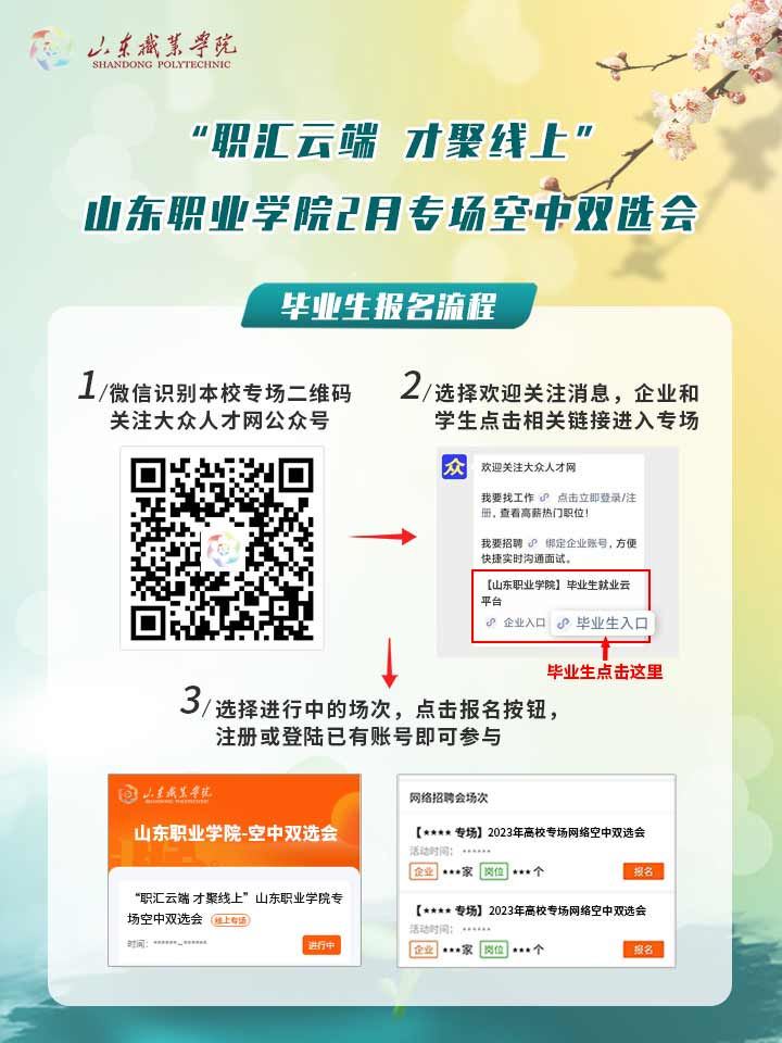 “職匯云端 才聚線上”山東職業學院2月專場空中雙選會報名流程圖