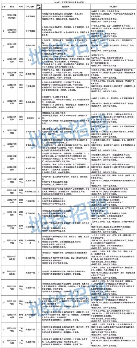 具體崗位要求詳見《2018年11月濟南軌道交通集團有限公司崗位需求一覽表》(附件1),每人限報一個崗位。