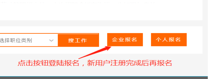 用人單位根據崗位需(xu)求進(jin)入相關專場,點擊【企業報(bao)名】按鈕登陸(lu)賬號報(bao)名即可,新用戶需(xu)要先注冊(ce)發布(bu)招聘信息,完成后再進(jin)行(xing)報(bao)名。