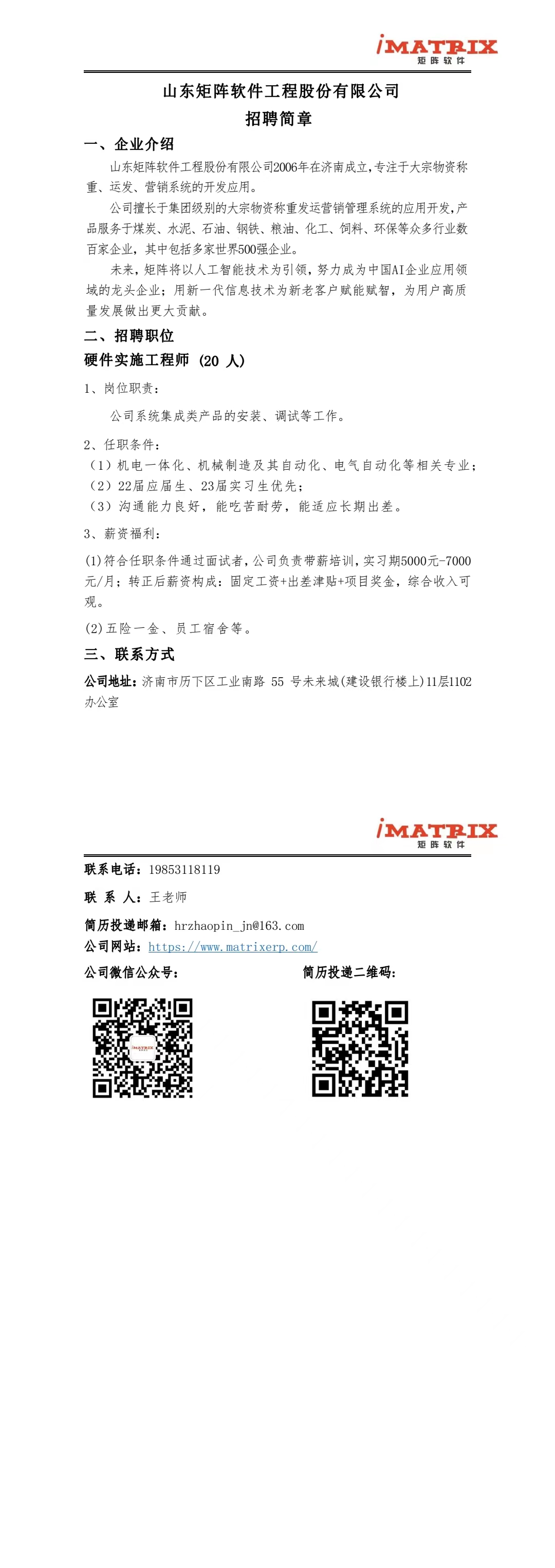 山東矩陣軟件工程股份有限公司招聘簡章