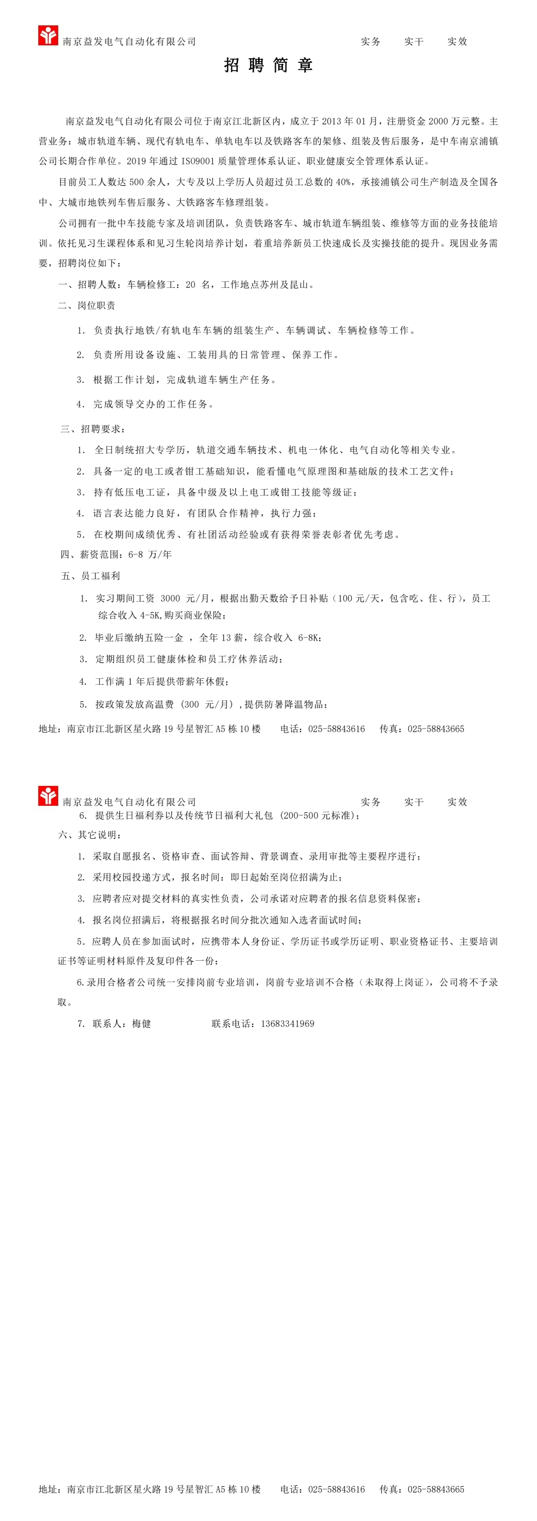 南京益發電氣自動化有限公司招聘簡章