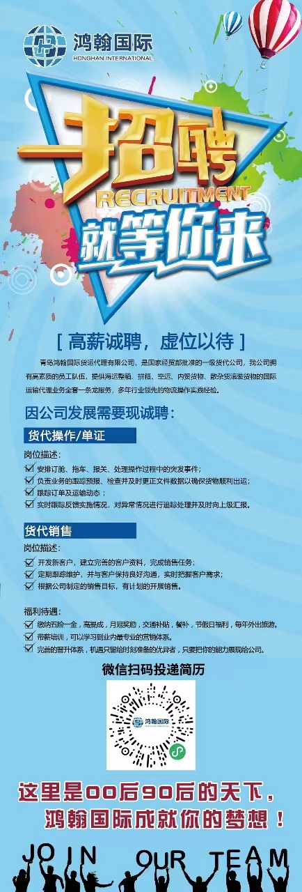 青島鴻瀚國際貨運代理有限公司招聘簡章