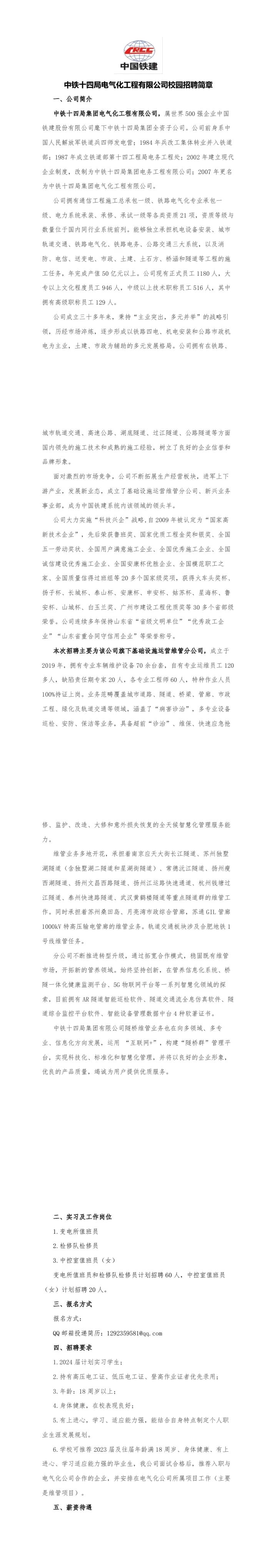 中鐵十四局電氣化工程有限公司2023年校園招聘簡章