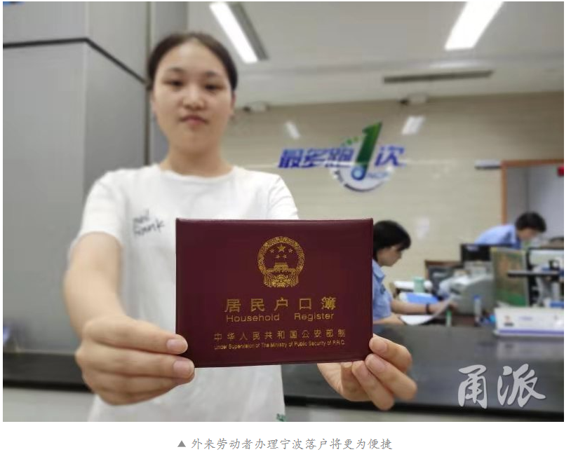 二(er)、優化(hua)外來勞動者落戶舉措。進一步優(you)化落戶政策,放開(kai)放寬外(wai)來(lai)勞動(dong)者落戶條件。推行長三角區(qu)域戶口(kou)網上遷移(yi)(yi),實現跨(kua)省戶口(kou)遷移(yi)(yi)一地辦理(li),實現浙東經濟合(he)作區(qu)五市部分戶口(kou)遷移(yi)(yi)業務跨(kua)城通辦、戶籍窗(chuang)口(kou)無差別辦理(li)。