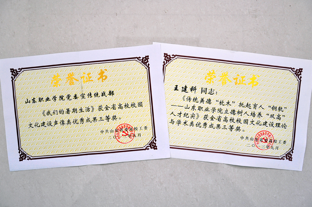 為全面貫徹落實黨的十八大精神和《中共中央國務院關于進一步加強和改進大學生思想政治教育的意見》精神,進一步鞏固和深化我省高校校園文化建設,山東省委高校工委組織開展了2012年度全省高校校園文化建設優秀成果評選活動。 近日,中共山東省委高校工委發出通報,表彰全省高校校園文化建設優秀成果,山東職業學院多項成果獲表彰。其中,《傳統美德“枕木”托起育人“鋼軌”——山東職業學院立德樹人培養“雙高”人才紀實》獲理論與學術類優秀成果三等獎,于2012年12月22日在中國教育報頭版頭條刊發;《我們的暑期生活》獲聲像類優秀成果三等獎,于2012年8月27日在中央電視臺一套節目綜合頻道《身邊的感動》欄目播出;“中華美德進校園”活動獲活動類優秀成果三等獎。據悉,此次評選活動共收到來自全省各高校申報的450余項成果,共評出理論與學術類優秀成果62項,活動類優秀成果85項,聲像類優秀成果69項。 《傳統美德“枕木”托起育人“鋼軌”——山東職業學院立德樹人培養“雙高”人才紀實》是針對山東職業學院在加強招生就業工作的同時,加強對學生進行中華美德、社會道德、職業素養教育的紀實新聞報道。該篇紀實報道以貼近生活、貼近師生、貼近實際“三貼近”為原則,以詳實的資料和具體事件為支撐,反映總結了山東職業學院開展德育、智育、美育等方面育人工作的做法及經驗。有利于激勵高校教育工作者進一步解放思想、開拓進取,在繼承優良傳統的基礎上不斷總結經驗,加強研究,推動高校教育工作在內容、形式、方法、手段等方面的創新,切實增強教育工作的針對性、實效性和吸引力、感染力。 《我們的暑期生活》是中央電視臺1套節目綜合頻道《身邊的感動》欄目在2012年8月27日刊播的記錄山東職業學院“中華美德進萬家”活動美德宣傳實踐小分隊在革命老區沂南縣青駝鎮山北頭村開展服務社會主義新農村建設,為當地設計新的環村路和設計供村民休閑的文化廣場社會實踐時的工作紀錄片。該片以青年大學生服務社會主義新農村建設為視角,以科技興農為題材,以弘揚社會公德為主旨,詳細記錄了美德宣傳實踐小分隊的社會實踐過程,講述了實踐過程中大學生面對突發問題及時調整優化工作方案,進而更加人性化的、合理的解決實際問題的做法。紀錄片在中央電視臺1套節目綜合頻道《身邊的感動》欄目播出后,在師生及家庭中間、校企合作的單位企業、兄弟院校、畢業生就業單位以及社會上引起強烈的輿論和反響。學生父母、用人單位一致認為,社會公德是中華傳統美德的重要組成部分,山東職業學院的社會公德教育從小處著手、從身邊做起、從細節入里,不僅體現了教育成果,展現了大學生精神風貌,也為廣大青年大學生做出了表率。 “中華美德進校園”是山東職業學院秉承“知能共進,德道同優”校訓精神和“就業靠專業,發展憑素質”的育人理念,開展社會主義核心價值體系教育,開展“中華美德進萬家”活動的系列活動之一。活動聘請著名學者歐陽中石先生,周恩來總理秘書紀東將軍,雷鋒生前戰友喬安山,全國道德模范、感動中國人物林秀貞,全國勞動模范、新時期產業工人杰出代表許振超,全國誠實守信道德模范劉延寶,全國勞動模范、我院校友邱為崢等先進人物為學院德育導師,為全院師生做德育報告和先進事跡報告,在加強全院師生的中華美德教育、職業道德教育的同時,提升大家的思想覺悟和精神文明素質水平。同時,在2012年暑期,“中華美德進萬家”活動遴選100名優秀學生組成8支美德實踐宣傳小分隊奔赴山東、河北等有關地市、學校和企業,學習愛國精神、紅嫂精神、愛崗敬業精神、甘于奉獻精神、孝老愛親精神等,領略季羨林、任繼愈、歐陽中石等大師風范,感悟國學魅力,踐行弘揚中華美德,為沂南縣山北頭村當地文化廣場和道路建設進行測繪,為服務地方發展添磚加瓦,將中華美德傳播四方。 “立德樹人,德育為先”讓山東職業學院的大學生體會到生活的溫暖與高尚,讓年輕的心靈充滿了陽光和夢想,傳統美德“枕木”,托起育人“鋼軌”,“山職夢”承載著山職人的“中國夢”。山東職業學院按照“中華美德進萬家”活動“立德樹人”的題詞精神開展學生素質教育效果突出,學生的素質境界和成才理想發生了轉變,畢業生越來越受到社會的認可,學生就業率保持持續增長,這些成績的取得都是山東職業學院把“立德樹人”作為培養人才的根本任務的最真實體現。