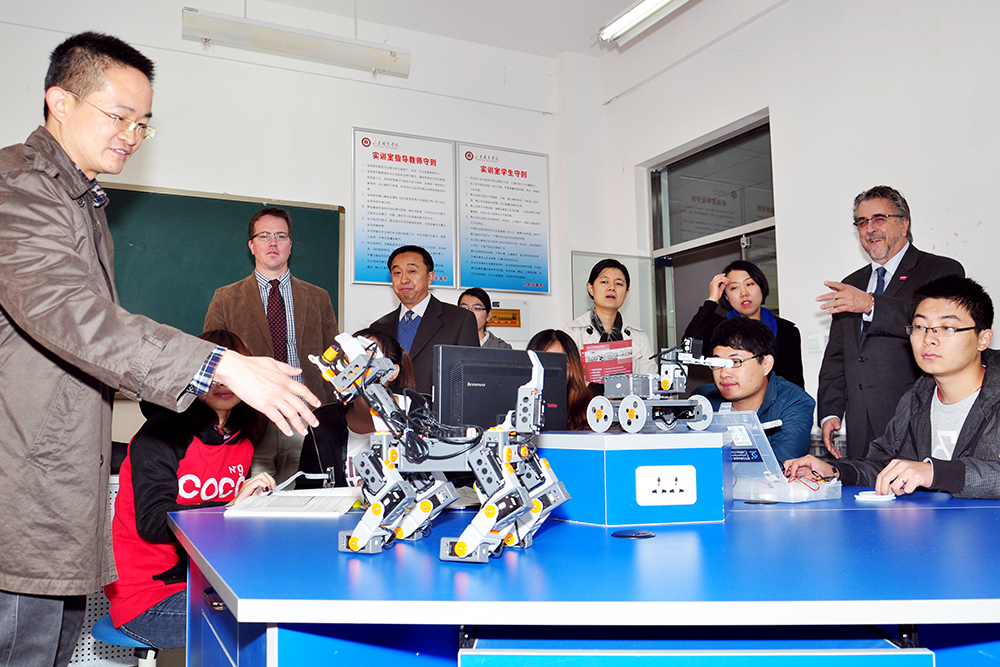 11月5日,加拿大魁北克省瓦尼亞學院院長Gilbert Heroux一行3人到訪我院,就校際交流與合作進行參觀考察。學院副院長馬慶渭、祝瑞花接待來訪。 馬慶渭向Gilbert Heroux先生一行到訪表示歡迎,就山東職業學院國際教育交流與合作情況作簡要說明,詳細介紹了學院與德國、韓國、澳大利亞、西班牙、新加坡、臺灣等國家和地區的院校建立的友好院校關系。馬慶渭表示,學院重視國際教育交流與合作,注重汲取國外現代優秀教育理念,希望能以Gilbert Heroux先生此次到訪為契機,院校雙方就師資培訓、師生交流互訪等項目進行探討與交流,促進學院國際交流與合作,提高辦學水平,提升人才培養質量。 祝瑞花在座談中詳細介紹了學院與德國、韓國、新加坡、臺灣等國家和地區的相關院校開設的人才培養合作班情況、開展的國際交流合作項目以及教師境外培訓等工作。 訪問期間,院校雙方互贈友誼禮品,Gilbert Heroux先生一行在馬慶渭的陪同下參觀了圖書館、軌道交通學院、機械工程系、機電裝備系、電氣工程系實驗實訓基地和場所。此次隨Gilbert Heroux先生來訪的還有加拿大魁北克省瓦尼亞學院財務總監Arlene Yamamoto女士、語言學院負責人Christopher Kenneth Hall先生。學院教務處副處長張欣,基礎部教師展春蕾,國際交流中心教師莊婷、劉金龍等參加上述活動。
