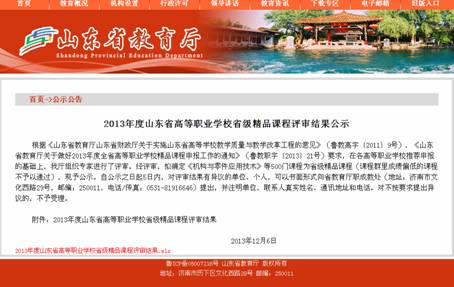 2013年12月11日,工程施工與計價系列課程經過山東省教育廳的評審和公示,成為2013年度山東省精品課程。