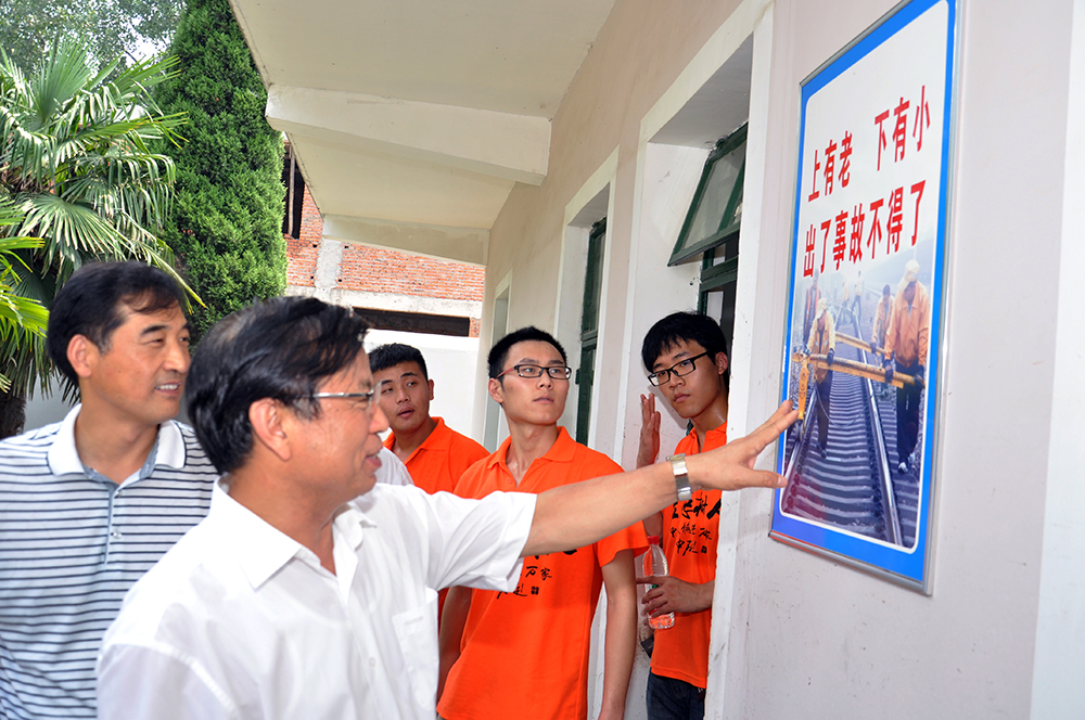 在阜陽工務段機關總部,像“雙鐘齊鳴,筑牢堤壩”這樣的10余塊藍色警示牌被間隔數米設置在道路旁格,格外醒目。工作人員介紹,機務段所承擔的工作任務不同于其它,是為列車高速安全平穩運行提供堅實路基的保障,工作中哪怕有一絲的疏忽,受到影響的將不僅僅是一列車,在這條線上跑的所有的列車都會因此而受到安全威脅。像這樣的警示牌不僅在機務段機關總部,在各車間、工區都有,有些警示語還是職工根據不同的工作要求和體會自己編出來的,目的就是提醒自己和身邊的每一位同事,安全無小事,小事看安全。
