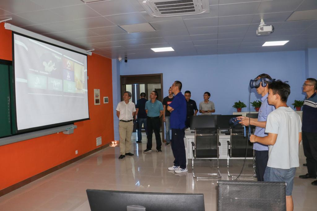 會后,高磊(lei)陪同(tong)濟南電務(wu)段領導一行參觀了(le)新一代信息技術產(chan)業(ye)學(xue)院(yuan)的(de)VR實訓室和鐵道學(xue)院(yuan)的(de)動車檢(jian)測實訓室。