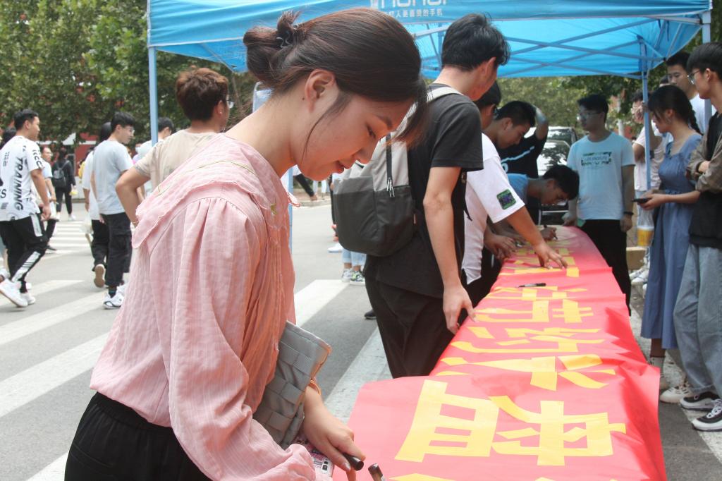 9月15日(ri),在(zai)餐廳(ting)南門(men)舉行(xing)了“光(guang)盤(pan)行(xing)動(dong)(dong)”簽(qian)字活動(dong)(dong),學(xue)校(xiao)領(ling)導、老師和同學(xue)們(men)都積極主動(dong)(dong)的(de)在(zai)橫幅上簽(qian)名,以實際行(xing)動(dong)(dong)支持“光(guang)盤(pan)行(xing)動(dong)(dong)”,表現了勤儉(jian)節約不浪費(fei)的(de)決心。為增強活動(dong)(dong)的(de)影響力,帶動(dong)(dong)廣大同學(xue)自覺自愿加(jia)入到 “光(guang)盤(pan)行(xing)動(dong)(dong)”中,下一(yi)步我(wo)校(xiao)還將開展隨拍校(xiao)園光(guang)盤(pan)活動(dong)(dong)以及線上光(guang)盤(pan)征(zheng)集評選活動(dong)(dong),并為優秀(xiu)作品(pin)發放精美小禮品(pin)。