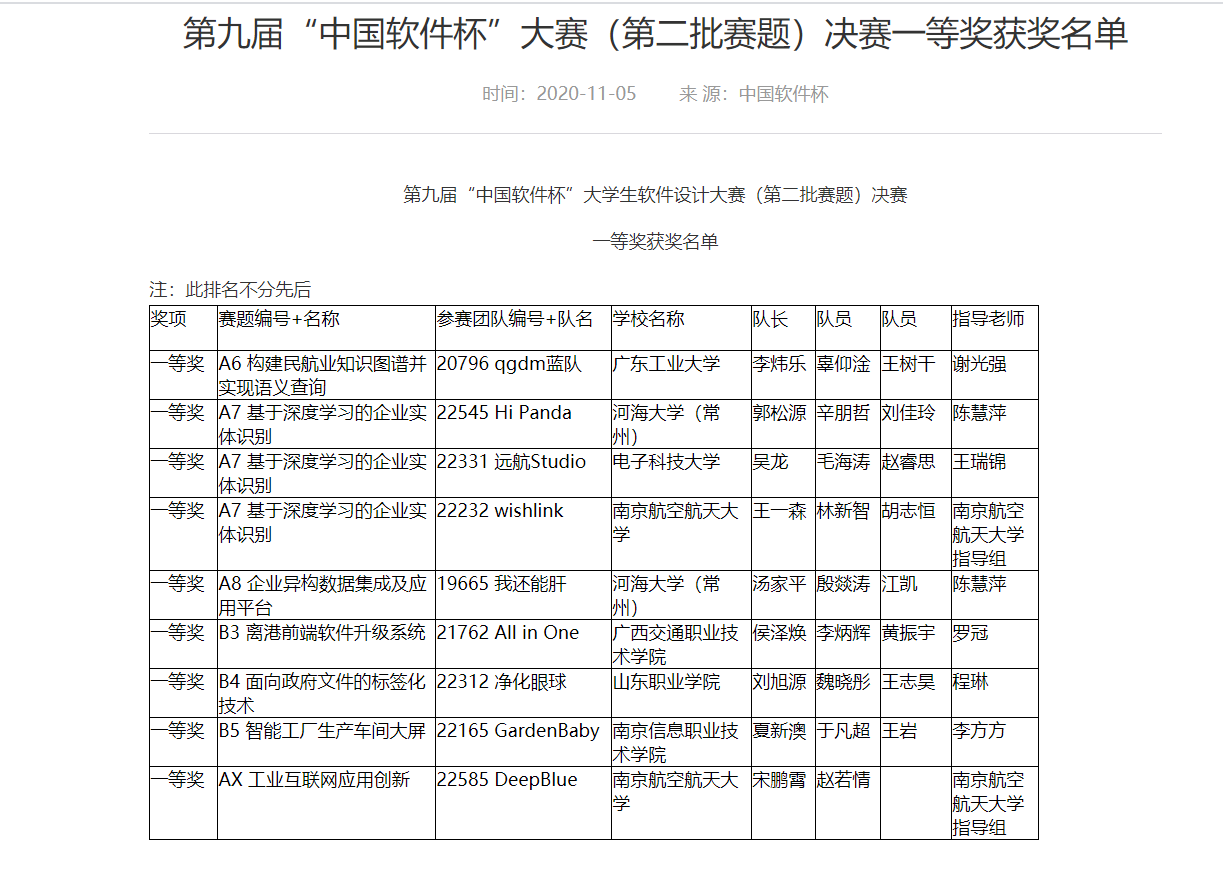 “中(zhong)國軟(ruan)件杯(bei)”大學生軟(ruan)件設(she)計大賽(sai)(sai)(sai)(sai)(sai)是(shi)一(yi)項面(mian)向國內在校學生的(de)公益性賽(sai)(sai)(sai)(sai)(sai)事。大賽(sai)(sai)(sai)(sai)(sai)由國家工(gong)業和(he)信息化部、教育部、江蘇省人民政府共(gong)同主(zhu)辦,本屆共(gong)有(you)5400余支(zhi)(zhi)隊(dui)(dui)(dui)伍(wu)參賽(sai)(sai)(sai)(sai)(sai),其中(zhong)第二(er)批賽(sai)(sai)(sai)(sai)(sai)題共(gong)有(you)報(bao)名隊(dui)(dui)(dui)伍(wu)2000余支(zhi)(zhi),初賽(sai)(sai)(sai)(sai)(sai)評(ping)審后共(gong)有(you)94支(zhi)(zhi)團(tuan)隊(dui)(dui)(dui)晉級決賽(sai)(sai)(sai)(sai)(sai)。歷(li)經云端決賽(sai)(sai)(sai)(sai)(sai)第一(yi)輪(lun)評(ping)審和(he)答辯,評(ping)出一(yi)等獎隊(dui)(dui)(dui)伍(wu)9支(zhi)(zhi),二(er)等獎隊(dui)(dui)(dui)伍(wu)37支(zhi)(zhi),三等獎隊(dui)(dui)(dui)伍(wu)48支(zhi)(zhi)。