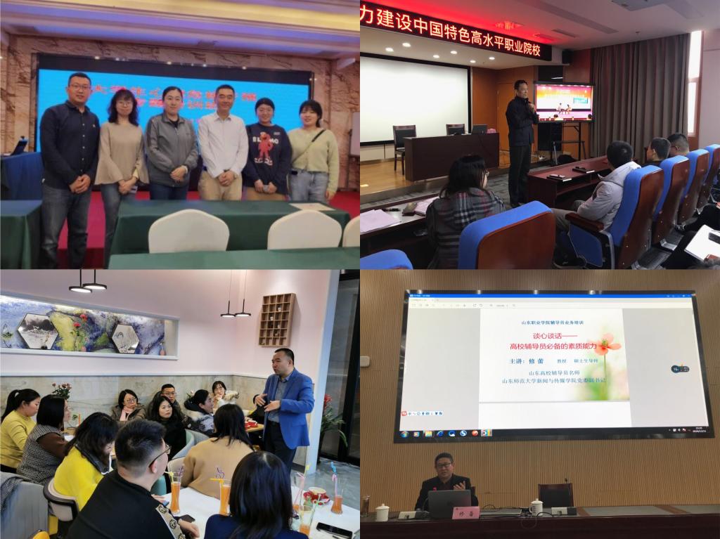先后(hou)派出7名輔(fu)導(dao)員老(lao)師(shi)參加大(da)學生(sheng)心理(li)危機干(gan)(gan)預實務專題培(pei)訓(xun)班。邀請山東(dong)省高校輔(fu)導(dao)員工作(zuo)研究(jiu)及(ji)培(pei)訓(xun)基地(di)辦公室(shi)常務副(fu)主(zhu)任申(shen)釗(zhao)教(jiao)授(shou)、蘇州大(da)學人際溝(gou)通(tong)研究(jiu)中心主(zhu)任滕暉教(jiao)授(shou)和山東(dong)師(shi)范大(da)學新(xin)聞與傳媒(mei)學院(yuan)黨委副(fu)書記修蕾教(jiao)授(shou)分別作(zuo)《輔(fu)導(dao)員職(zhi)業能(neng)(neng)力發(fa)展的路徑》《大(da)學生(sheng)心理(li)危機干(gan)(gan)預與溝(gou)通(tong)談(tan)(tan)話技巧》《談(tan)(tan)心談(tan)(tan)話——高校輔(fu)導(dao)員必備的素質能(neng)(neng)力》專題講座,著力提(ti)升輔(fu)導(dao)員職(zhi)業生(sheng)涯規劃、解決實際問(wen)題以及(ji)處理(li)應(ying)急事件的能(neng)(neng)力。