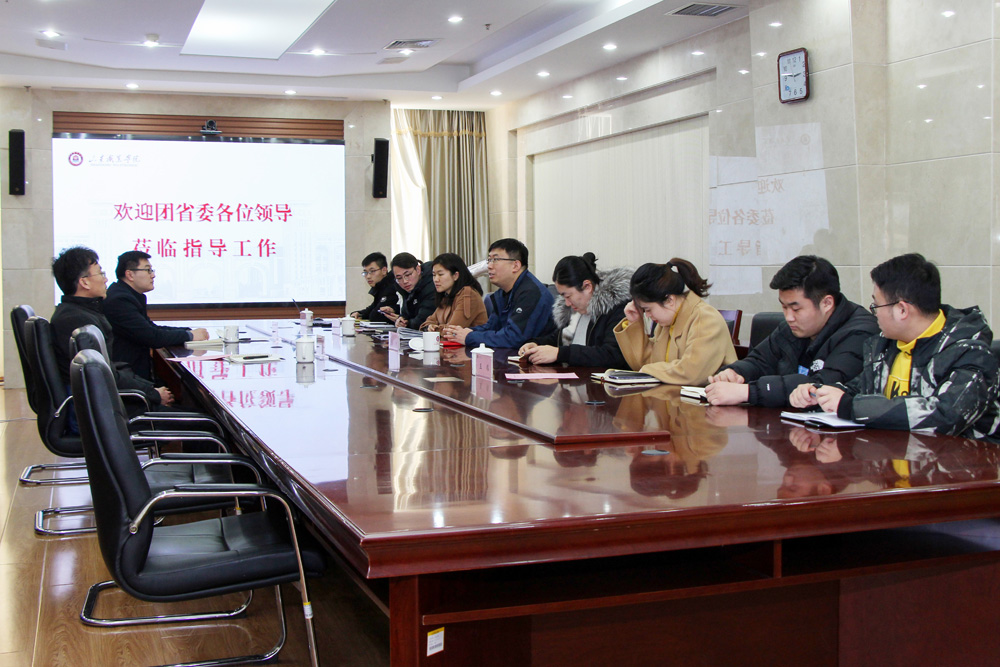 近日,共(gong)青團(tuan)山東省(sheng)委(wei)副書記(ji)尚(shang)勝波一行來校調研(yan)共(gong)青團(tuan)工(gong)作(zuo)。院(yuan)長秦河出席(xi)會見,黨委(wei)副書記(ji)徐冬陪同調研(yan)。