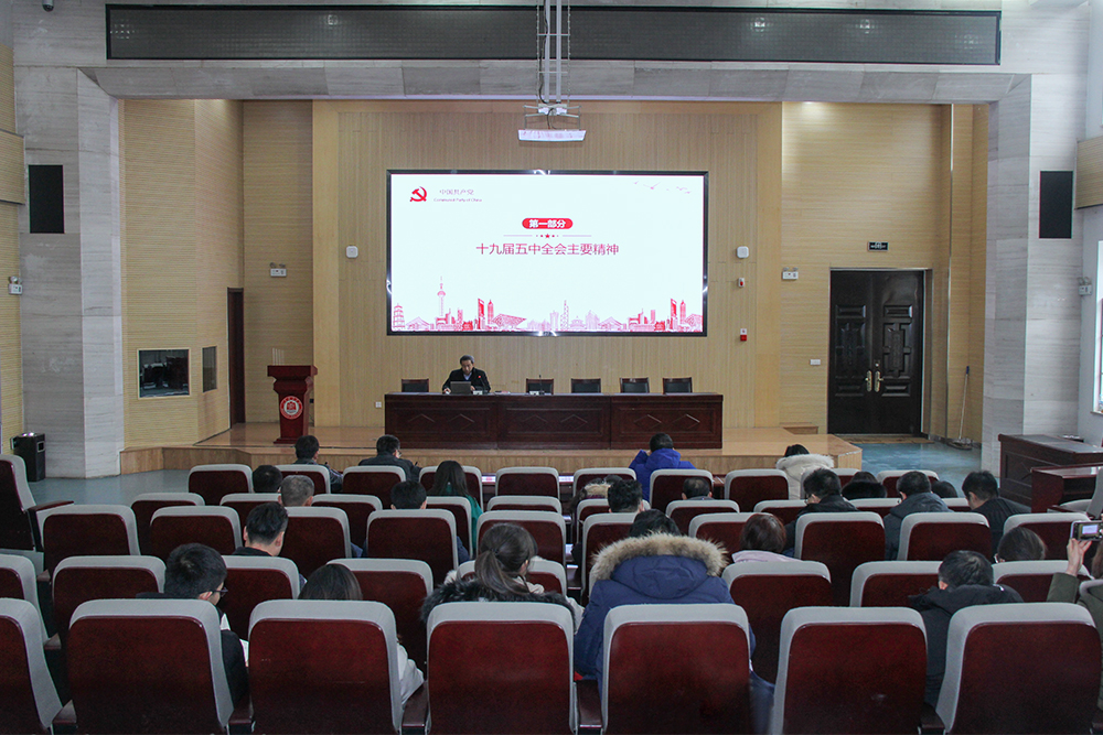 12月29日下午,副院(yuan)長郭(guo)鵬在圖書行(xing)政(zheng)樓(lou)東報告廳以《第十九(jiu)屆五中(zhong)全會(hui)精(jing)神學(xue)習》為題(ti)講授專題(ti)黨課,學(xue)校教務(wu)處、科學(xue)技術與社會(hui)服務(wu)處、招生就(jiu)業(ye)與校企(qi)合作處、繼續(xu)教育處、南山(shan)書院(yuan)、土(tu)木(mu)工程(cheng)學(xue)院(yuan)、管理學(xue)院(yuan)、國際交流學(xue)院(yuan)、實訓中(zhong)心、圖書館等十個部門的黨員參加了黨課學(xue)習。