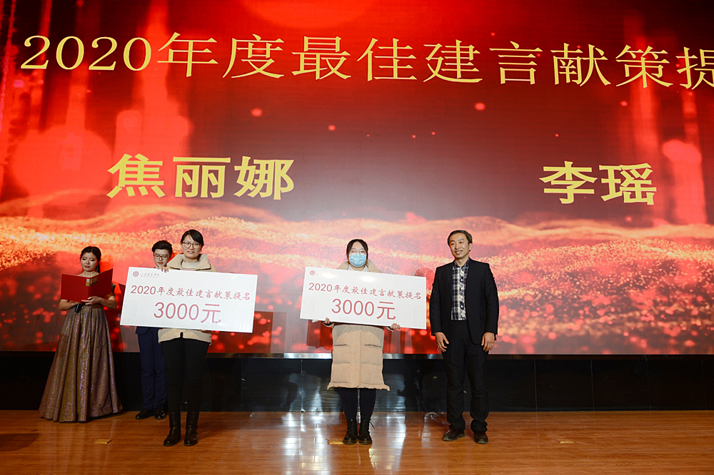 副(fu)院長郭鵬向智能(neng)制(zhi)造學院教(jiao)師焦麗娜、易安書(shu)院學生李瑤(yao)頒發了2020年度最佳(jia)建言獻策提名(ming)。