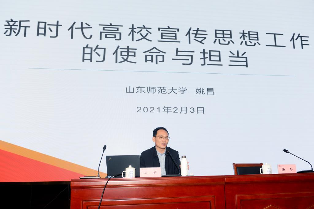 姚昌(chang)結合自己多年的高校(xiao)宣(xuan)傳思想(xiang)(xiang)政治工(gong)(gong)作(zuo)(zuo)經驗,作(zuo)(zuo)了(le)題為(wei)《新時代高校(xiao)宣(xuan)傳思想(xiang)(xiang)工(gong)(gong)作(zuo)(zuo)的使(shi)命與(yu)(yu)擔(dan)當》的講座。他從高校(xiao)宣(xuan)傳思想(xiang)(xiang)工(gong)(gong)作(zuo)(zuo)的短(duan)板與(yu)(yu)不足(zu)、使(shi)命與(yu)(yu)要求、路(lu)徑與(yu)(yu)措施、黨務工(gong)(gong)作(zuo)(zuo)者應該(gai)具備的素養與(yu)(yu)格局等方面做了(le)輔導(dao)。