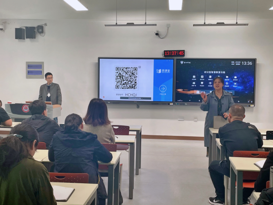 呂緒法對在線課程發展現狀、平臺(tai)背景等進(jin)行(xing)簡要介紹,重點就(jiu)混合式課程教學理(li)念、教學設計(ji)、重構教學模式進(jin)行(xing)了分享。與會教師認真聆(ling)聽,并與技(ji)術人員就(jiu)混合式教學設計(ji)、教學組織中的遇(yu)到的困難以及(ji)平臺(tai)具(ju)體操作等進(jin)行(xing)深入溝通交流(liu)。