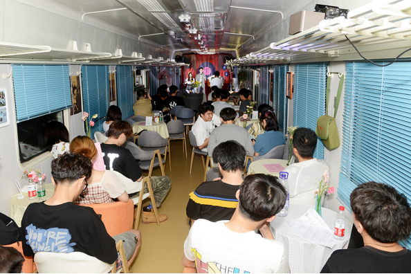 5月13日,第一屆火車音樂節(jie)民謠(yao)專場(chang)在網紅打卡(ka)點——火車“曾經咖啡吧”開場(chang)。黨委書記高(gao)磊、副(fu)院長郭培謙共同陪伴同學(xue)們(men),一起(qi)感受民謠(yao)情懷。