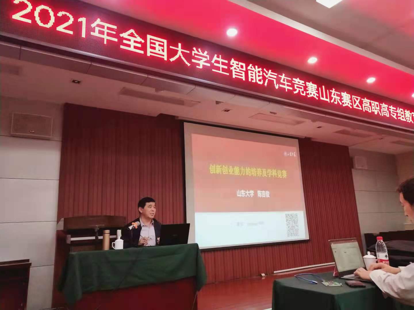 會上,我校(xiao)創(chuang)(chuang)(chuang)(chuang)新創(chuang)(chuang)(chuang)(chuang)業教育中心副(fu)主任齊濤介紹了(le)學(xue)(xue)(xue)校(xiao)基本情況(kuang)和(he)(he)創(chuang)(chuang)(chuang)(chuang)新創(chuang)(chuang)(chuang)(chuang)業工作成效(xiao)。山東(dong)大學(xue)(xue)(xue)陳(chen)言(yan)俊教授(shou)和(he)(he)陳(chen)桂友(you)教授(shou)分別做(zuo)了(le)《創(chuang)(chuang)(chuang)(chuang)新創(chuang)(chuang)(chuang)(chuang)業能力的培養及(ji)學(xue)(xue)(xue)科競(jing)(jing)賽(sai)(sai)》《高職高專智(zhi)(zhi)能汽車競(jing)(jing)賽(sai)(sai)的組(zu)織(zhi)與(yu)開展》的專題報告。競(jing)(jing)賽(sai)(sai)設(she)備工程師就競(jing)(jing)賽(sai)(sai)規則進行了(le)解讀,并對智(zhi)(zhi)能車軟硬件進行了(le)講解及(ji)調試。