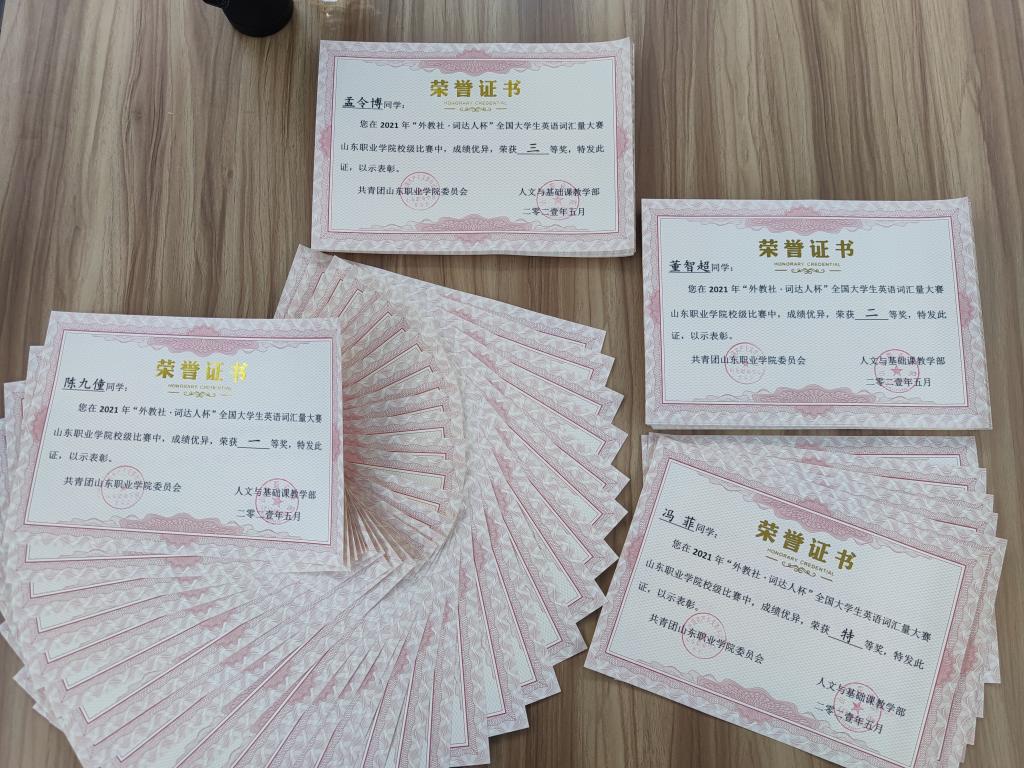6月6日(ri),在首屆“外教社?詞達人杯”全(quan)國大(da)學(xue)生英語詞匯能力大(da)賽全(quan)國決賽中,我校學(xue)生喜(xi)獲特等獎(jiang)1名(ming)(ming),一等獎(jiang)1名(ming)(ming),二等獎(jiang)2名(ming)(ming),三等獎(jiang)5名(ming)(ming)。