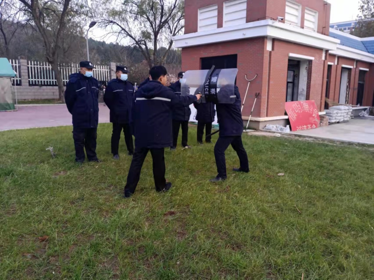 在防暴(bao)演練(lian)中設置了(le)演練(lian)情(qing)境(jing),扮演“暴(bao)徒”人員(yuan)持(chi)械闖入學校(xiao),學校(xiao)立即啟動應急預案,組織學生(sheng)迅(xun)速(su)躲避(bi),保安隊(dui)員(yuan)手持(chi)伸縮鋼叉、防暴(bao)棍、盾(dun)牌等裝備及時規范(fan)處(chu)置,將“暴(bao)徒”制服(fu)。隊(dui)員(yuan)們戰術明確(que)、真打(da)實練(lian),充分展示(shi)了(le)安保隊(dui)員(yuan)優良作風和良好技能。
