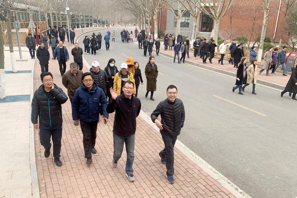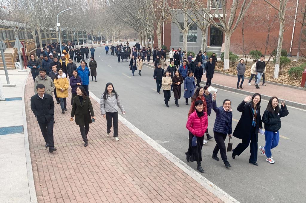 本次活(huo)動以校(xiao)(xiao)門口火車頭(tou)為起點(dian),繞校(xiao)(xiao)園一(yi)周,全程約2公里(li)。健步(bu)走隊(dui)伍浩浩蕩蕩,巍(wei)巍(wei)壯觀。一(yi)路(lu)上,大(da)(da)家邁著(zhu)輕快(kuai)的(de)步(bu)伐(fa),意氣風發地(di)沿著(zhu)指定路(lu)線大(da)(da)踏步(bu)前進。活(huo)動中,老師(shi)們結伴而行,呼吸著(zhu)清新(xin)空氣,欣賞(shang)著(zhu)校(xiao)(xiao)園冬季美景,每個(ge)人臉(lian)上都洋(yang)溢(yi)著(zhu)喜悅的(de)笑(xiao)容(rong),享受著(zhu)健康(kang)運動帶來的(de)快(kuai)樂。