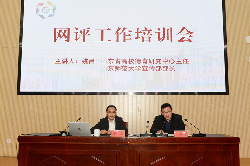 為進(jin)一步鞏固壯大(da)網(wang)上主(zhu)(zhu)流輿論,加大(da)網(wang)上正面宣傳引(yin)導,12月29日(ri),我校在圖書行(xing)政樓東報告(gao)廳舉辦(ban)了網(wang)評工(gong)作培訓會(hui),邀請到(dao)山(shan)東高(gao)校德育(yu)研究中心(xin)主(zhu)(zhu)任、山(shan)東師(shi)范大(da)學(xue)宣傳部部長姚(yao)昌作輔導報告(gao)。培訓會(hui)由黨委宣傳部部長杜樹元(yuan)主(zhu)(zhu)持。
