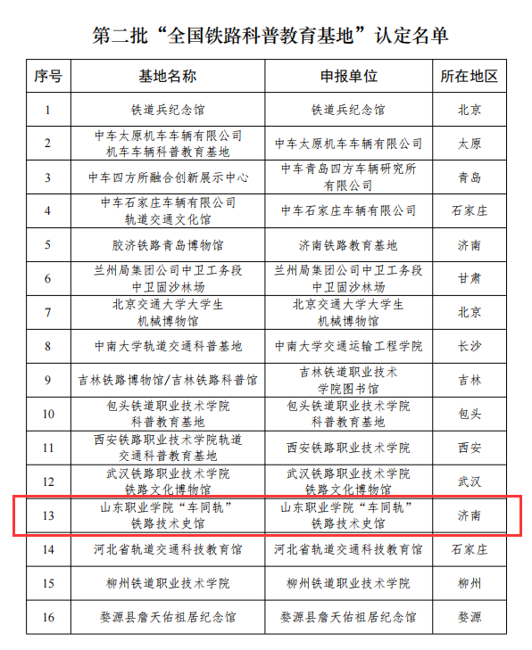 5月9日,中國(guo)鐵道學會公(gong)布(bu)了第二批“全國(guo)鐵路科普教育基(ji)地”認定名單,我校“車同軌”鐵路技術史館成(cheng)功(gong)入選(xuan)。