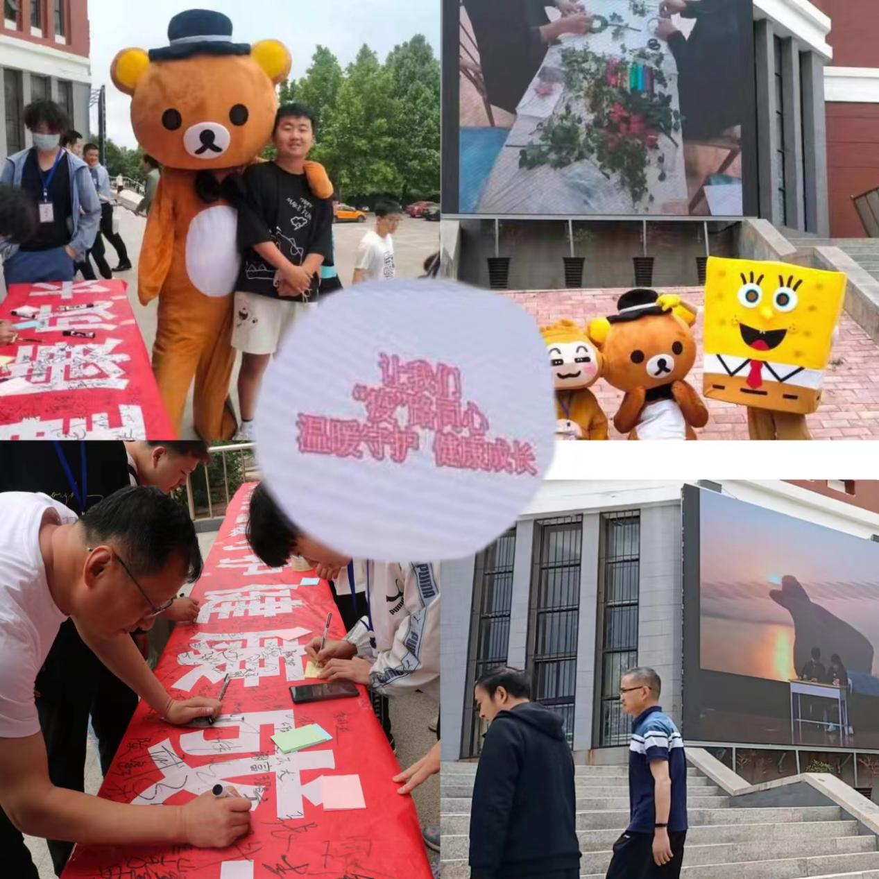 5月25日中午,大(da)學(xue)(xue)生心(xin)(xin)理健康協會在餐廳門口舉行(xing)了(le)“‘疫’路同(tong)心(xin)(xin) 溫暖(nuan)守護 健康成(cheng)長”宣傳活(huo)動(dong),通過條(tiao)幅簽字(zi)、填心(xin)(xin)愿卡(ka)、擁抱玩偶等活(huo)動(dong)呼吁同(tong)學(xue)(xue)們愛自己、愛大(da)家、讓愛充滿校園。