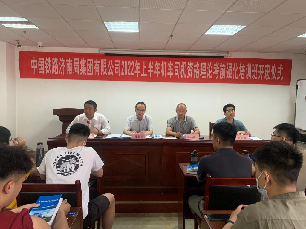 6月8日下午(wu),中(zhong)國(guo)鐵路(lu)濟南(nan)(nan)(nan)(nan)局(ju)(ju)集團有限(xian)公司(si)2022年(nian)上半年(nian)機(ji)車司(si)機(ji)資格(ge)理論(lun)考前強(qiang)化(hua)培訓(xun)(xun),在我(wo)校解放路(lu)校區(qu)舉(ju)行了(le)開(kai)班儀式。濟南(nan)(nan)(nan)(nan)局(ju)(ju)機(ji)務(wu)(wu)處高工(gong)韓長(chang)(chang)虎(hu)、濟南(nan)(nan)(nan)(nan)機(ji)務(wu)(wu)段(duan)科長(chang)(chang)吳獻(xian)偉、濟南(nan)(nan)(nan)(nan)培訓(xun)(xun)中(zhong)心科長(chang)(chang)趙延卿,我(wo)校繼(ji)續教(jiao)育學院院長(chang)(chang)孫(sun)洪(hong)濤出席儀式。鐵路(lu)局(ju)(ju)帶(dai)隊老師及(ji)110名學員參加儀式。開(kai)班儀式由吳獻(xian)偉主持。