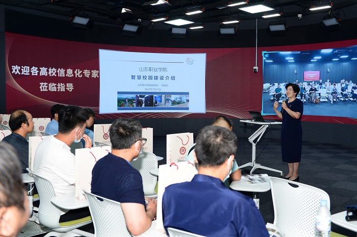 7月(yue)31日,由山東省教(jiao)育廳主(zhu)辦的(de)山東省高等教(jiao)育數字化管(guan)理能力培訓班(ban)來我(wo)校(xiao)(xiao)現場觀摩交(jiao)流,山東省高等學(xue)校(xiao)(xiao)師資培訓中(zhong)心、全省各高校(xiao)(xiao)信息化管(guan)理部門主(zhu)要(yao)負責同志等共計70余(yu)人參加。我(wo)校(xiao)(xiao)副院長祝瑞花出席(xi)并作智慧校(xiao)(xiao)園建設經驗(yan)交(jiao)流。