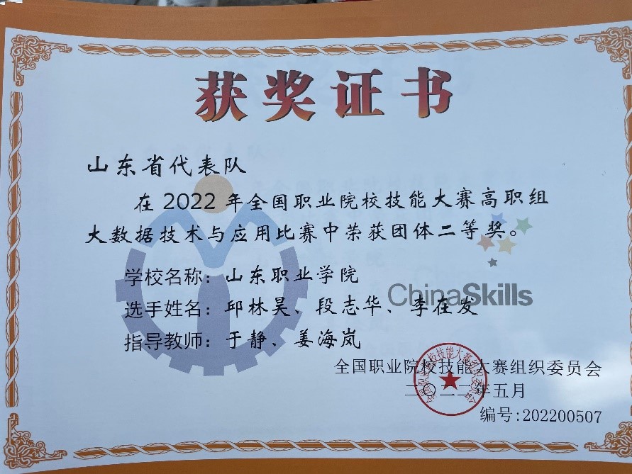7月28日至31日,由教育部(bu)、重慶市人民政府等主辦的2022年全(quan)國(guo)職(zhi)業院(yuan)校技(ji)能(neng)大賽(高職(zhi)組)“大數據技(ji)術(shu)(shu)與應用”賽項在重慶工(gong)商職(zhi)業學(xue)院(yuan)舉辦,我校新一代信息技(ji)術(shu)(shu)產業學(xue)院(yuan)團隊取得二等獎的好成績。