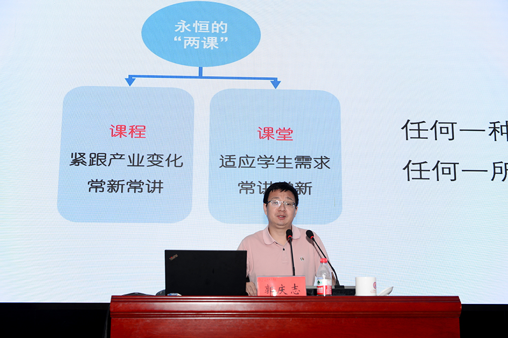 開(kai)班(ban)儀式結(jie)束(shu)后,山東(dong)省(sheng)職(zhi)(zhi)業(ye)技術教(jiao)育(yu)(yu)理論研究中心秘(mi)書長、副教(jiao)授(shou)郭慶志以《從職(zhi)(zhi)業(ye)教(jiao)育(yu)(yu)法(fa)看(kan)職(zhi)(zhi)業(ye)教(jiao)育(yu)(yu)發展(zhan)的(de)形勢與政策》為題做首場專(zhuan)題輔(fu)導報(bao)告。總結(jie)分析(xi)了(le)我國當(dang)前職(zhi)(zhi)業(ye)教(jiao)育(yu)(yu)的(de)形勢,重點(dian)就新修(xiu)訂的(de)職(zhi)(zhi)教(jiao)法(fa)的(de)10個突破進(jin)(jin)行了(le)詳細介紹,并從找準定位、敢于爭(zheng)先、真育(yu)(yu)英(ying)才、教(jiao)師成長等方(fang)面(mian)對(dui)學校的(de)發展(zhan)進(jin)(jin)行了(le)思考(kao)。整場報(bao)告內容豐富、緊密聯系實(shi)際,對(dui)全面(mian)準確領(ling)(ling)會(hui)新職(zhi)(zhi)教(jiao)法(fa)如何(he)引(yin)領(ling)(ling)推動職(zhi)(zhi)業(ye)教(jiao)育(yu)(yu)高質量發展(zhan)有(you)極大(da)啟(qi)發和(he)指導意(yi)義。