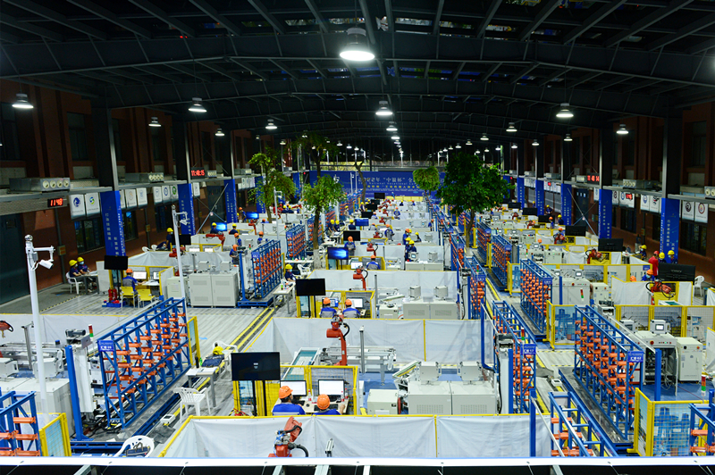 本賽項以“中國制(zhi)(zhi)造(zao)(zao)2025”規(gui)劃為(wei)背(bei)景,針對中國制(zhi)(zhi)造(zao)(zao)業(ye)(ye)重(zhong)點領域加速邁向數字化智能化新趨勢(shi),與(yu)世界技(ji)能大(da)賽接軌(gui),賽題取(qu)自工(gong)業(ye)(ye)機(ji)(ji)器人真實的工(gong)業(ye)(ye)應(ying)用(yong)(yong)場景,融合了PLC、機(ji)(ji)器視覺、自主導航AGV、工(gong)業(ye)(ye)機(ji)(ji)器人示(shi)教編程(cheng)、MES、數字孿生、變頻控制(zhi)(zhi)、伺(si)服控制(zhi)(zhi)等(deng)近10種(zhong)智能制(zhi)(zhi)造(zao)(zao)先進技(ji)術(shu),圍(wei)繞編程(cheng)控制(zhi)(zhi)、自動搬運(yun)和裝配等(deng)工(gong)作領域,用(yong)(yong)時一天半、12個小時,綜合考(kao)察選手以工(gong)業(ye)(ye)機(ji)(ji)器人技(ji)術(shu)應(ying)用(yong)(yong)為(wei)核心、多種(zhong)先進制(zhi)(zhi)造(zao)(zao)技(ji)術(shu)系統應(ying)用(yong)(yong)的能力以及(ji)臨場應(ying)變、團(tuan)隊協(xie)作、安(an)全生產、勞動精(jing)神、工(gong)匠精(jing)神等(deng)職業(ye)(ye)素質。