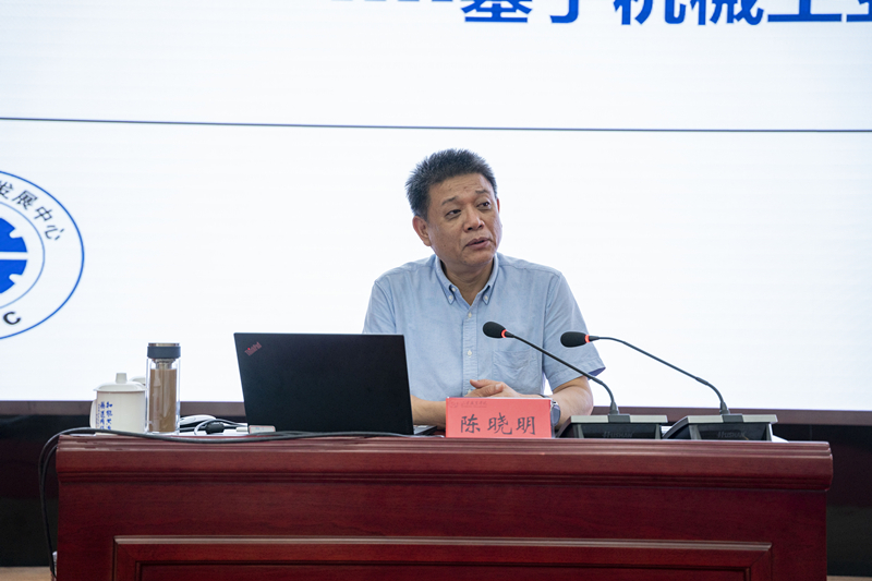 開班(ban)儀式結束(shu)后,機械工業(ye)(ye)(ye)(ye)(ye)教(jiao)(jiao)(jiao)育(yu)發展(zhan)中心(xin)主任陳(chen)(chen)曉明以《制造業(ye)(ye)(ye)(ye)(ye)高質(zhi)量發展(zhan)下的(de)(de)職業(ye)(ye)(ye)(ye)(ye)教(jiao)(jiao)(jiao)育(yu)高水(shui)平(ping)專業(ye)(ye)(ye)(ye)(ye)建(jian)設——基于機械工業(ye)(ye)(ye)(ye)(ye)數(shu)字(zi)(zi)化(hua)轉(zhuan)型(xing)(xing)與(yu)產(chan)教(jiao)(jiao)(jiao)科(ke)融(rong)(rong)合的(de)(de)思考》為題(ti)做首(shou)場專題(ti)報(bao)告。陳(chen)(chen)主任從(cong)裝備(bei)制造業(ye)(ye)(ye)(ye)(ye)高質(zhi)量發展(zhan)與(yu)人才需求、職業(ye)(ye)(ye)(ye)(ye)教(jiao)(jiao)(jiao)育(yu)高質(zhi)量發展(zhan)與(yu)產(chan)科(ke)教(jiao)(jiao)(jiao)融(rong)(rong)合、適應(ying)企業(ye)(ye)(ye)(ye)(ye)數(shu)字(zi)(zi)化(hua)轉(zhuan)型(xing)(xing)的(de)(de)專業(ye)(ye)(ye)(ye)(ye)建(jian)設策略、共(gong)鑄產(chan)教(jiao)(jiao)(jiao)融(rong)(rong)合創造力的(de)(de)行業(ye)(ye)(ye)(ye)(ye)服務行動等四個(ge)方面深入淺(qian)出(chu)的(de)(de)分析了(le)制造業(ye)(ye)(ye)(ye)(ye)產(chan)業(ye)(ye)(ye)(ye)(ye)發展(zhan)的(de)(de)現狀,以及職業(ye)(ye)(ye)(ye)(ye)教(jiao)(jiao)(jiao)育(yu)高質(zhi)量發展(zhan)的(de)(de)路徑(jing),并對我校專業(ye)(ye)(ye)(ye)(ye)及專業(ye)(ye)(ye)(ye)(ye)群的(de)(de)建(jian)設情況,提出(chu)了(le)寶貴的(de)(de)意(yi)見和建(jian)議。整場報(bao)告內(nei)容(rong)豐富、理論(lun)聯系(xi)實際密切(qie),贏得了(le)參培教(jiao)(jiao)(jiao)師(shi)的(de)(de)陣陣掌(zhang)聲。
