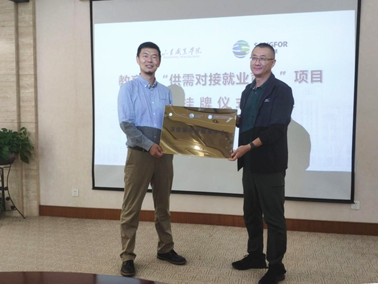 8月29日,我校(xiao)與深信(xin)服科技股份有限(xian)公司(si)舉行教(jiao)育(yu)(yu)部“供需對接就業(ye)育(yu)(yu)人(ren)”項目掛牌(pai)儀式暨產教(jiao)融合校(xiao)企(qi)合作(zuo)研討會。學(xue)校(xiao)黨委(wei)書記高磊、副院長祝(zhu)瑞花,新一代信(xin)息技術產業(ye)學(xue)院黨總支書記兼院長楊文虎和相關(guan)教(jiao)師代表,深信(xin)服科技股份有限(xian)公司(si)山東分(fen)公司(si)總經理羅年水、產業(ye)教(jiao)育(yu)(yu)中心校(xiao)企(qi)合作(zuo)北方區負(fu)責人(ren)邢(xing)雷、山東省教(jiao)育(yu)(yu)業(ye)務負(fu)責人(ren)田恒韜參加了儀式。