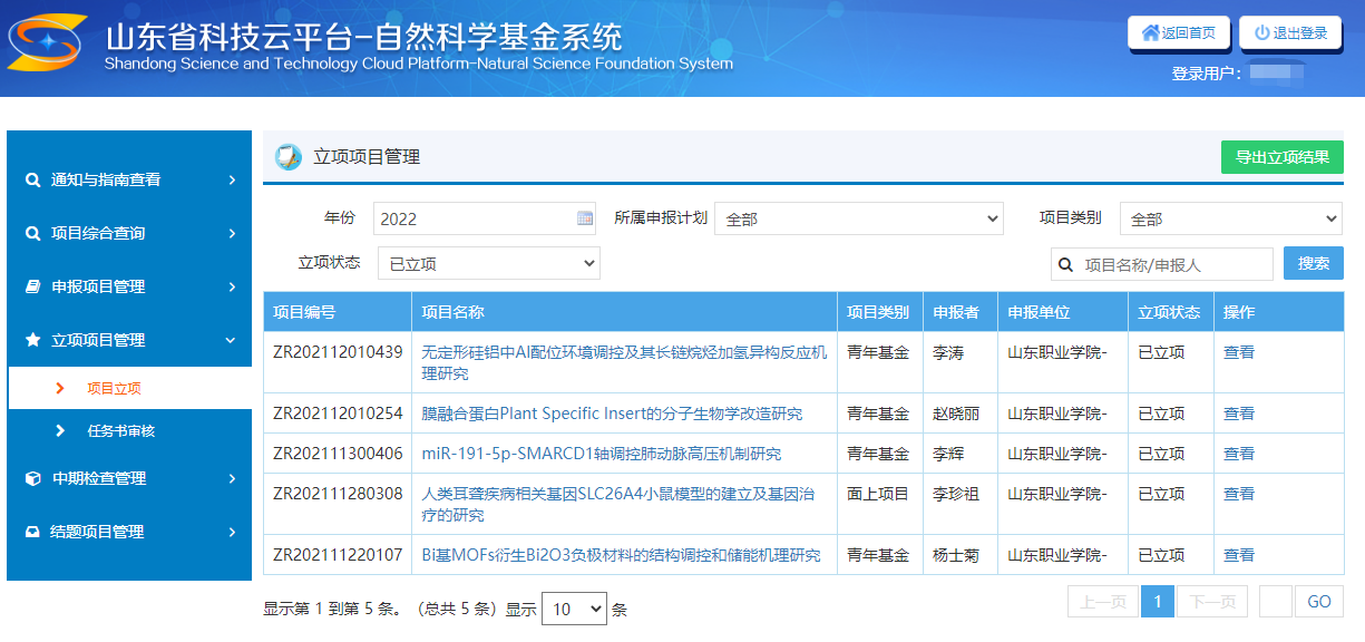 2022年度山東省自(zi)然科學基(ji)金項目(mu)(第一批)共立項3179項,獲批立項的單位共170個。其中(zhong),共有(you)5所職(zhi)業院校獲批10項資助,我校占比(bi)一半。
