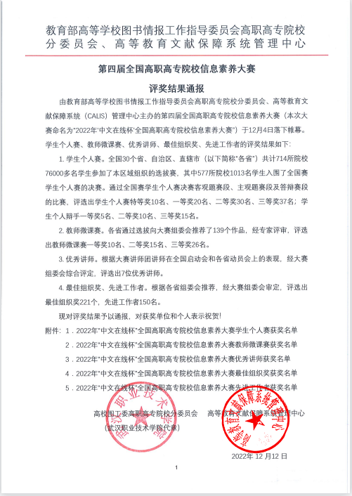 12月4日(ri),2022年(nian)“中文在線杯”全國(guo)高(gao)職高(gao)專院校(xiao)信息素養大賽決(jue)賽圓滿落幕(mu),由我校(xiao)圖書館常威、龍騰指導的桐林書院2022級學生李(li)驍哲(zhe),榮獲一等(deng)獎。