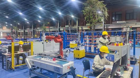 本賽項(xiang)以“中國制(zhi)(zhi)造2025”規劃為背(bei)景(jing),賽題取(qu)自(zi)工(gong)業機(ji)器(qi)(qi)(qi)人真實(shi)的工(gong)業應(ying)(ying)用(yong)場(chang)景(jing),融合(he)了(le)PLC、機(ji)器(qi)(qi)(qi)視覺、自(zi)主(zhu)導航AGV、工(gong)業機(ji)器(qi)(qi)(qi)人示(shi)教(jiao)編程(cheng)、MES、數字孿(luan)生、變(bian)頻控制(zhi)(zhi)、伺(si)服控制(zhi)(zhi)等近10種智(zhi)能制(zhi)(zhi)造先進技術(shu),采(cai)取(qu)團體(ti)賽的形(xing)式,每(mei)隊由2名選手(shou)組成(cheng),比賽時間為4小時,共分4個場(chang)次進行,綜(zong)合(he)考(kao)察選手(shou)以工(gong)業機(ji)器(qi)(qi)(qi)人技術(shu)應(ying)(ying)用(yong)為核(he)心、多(duo)種先進制(zhi)(zhi)造技術(shu)系統應(ying)(ying)用(yong)的能力以及(ji)臨場(chang)應(ying)(ying)變(bian)、團隊協(xie)作、安(an)全生產、勞動精神、工(gong)匠精神等職業素質。