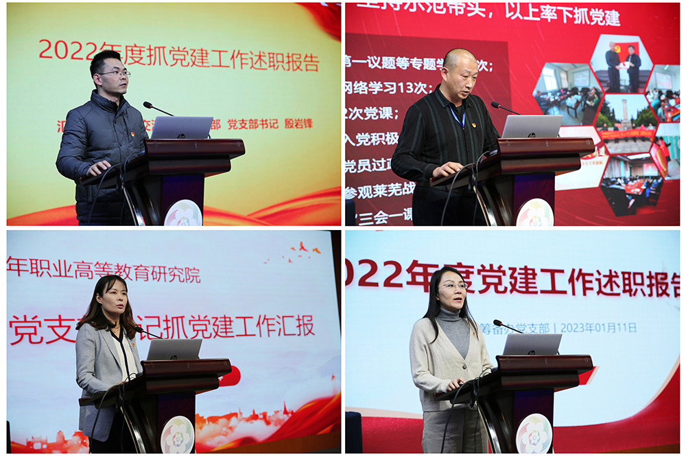 會(hui)上,24名直(zhi)屬黨支部書記(ji)(ji)進(jin)行(xing)了(le)會(hui)議述職(zhi),16名黨組織書記(ji)(ji)進(jin)行(xing)了(le)書面述職(zhi),重(zhong)點圍繞學(xue)習宣傳貫徹習近平新時(shi)代中國特色社會(hui)主義(yi)思想和黨的(de)(de)二十(shi)大精神情況、履行(xing)抓(zhua)基(ji)層(ceng)(ceng)黨建工作責任情況、落實基(ji)層(ceng)(ceng)黨建重(zhong)點任務情況、推(tui)進(jin)問題整(zheng)改(gai)情況、存在的(de)(de)突出問題及改(gai)進(jin)工作的(de)(de)思路措(cuo)施等進(jin)行(xing)了(le)匯報。