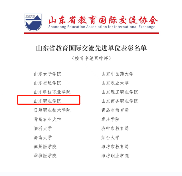近日,山(shan)東(dong)(dong)省(sheng)(sheng)教育(yu)(yu)國(guo)(guo)際交(jiao)(jiao)流協會公(gong)布《關于表彰2022年度山(shan)東(dong)(dong)省(sheng)(sheng)教育(yu)(yu)國(guo)(guo)際交(jiao)(jiao)流先進(jin)單位及先進(jin)個(ge)人的決定》,我校獲評“山(shan)東(dong)(dong)省(sheng)(sheng)教育(yu)(yu)國(guo)(guo)際交(jiao)(jiao)流先進(jin)單位”,國(guo)(guo)際交(jiao)(jiao)流學院(yuan)高恒榮獲“山(shan)東(dong)(dong)省(sheng)(sheng)教育(yu)(yu)國(guo)(guo)際交(jiao)(jiao)流先進(jin)個(ge)人”稱號。